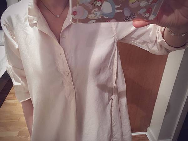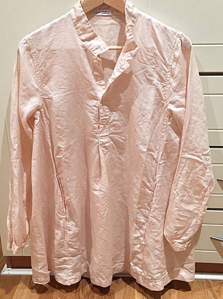 本尊顏色深一瞇瞇,偏蜜桃色,料子很軟很薄,絲質混紡,光澤很美,可惜非常皺