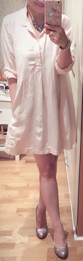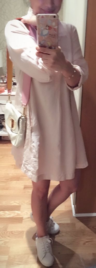 穿中性的shirt dress不要太強調胸部線條(大胸穿一定要加腰帶,切記!),裏頭穿的是bra top,能把胸部壓平一點