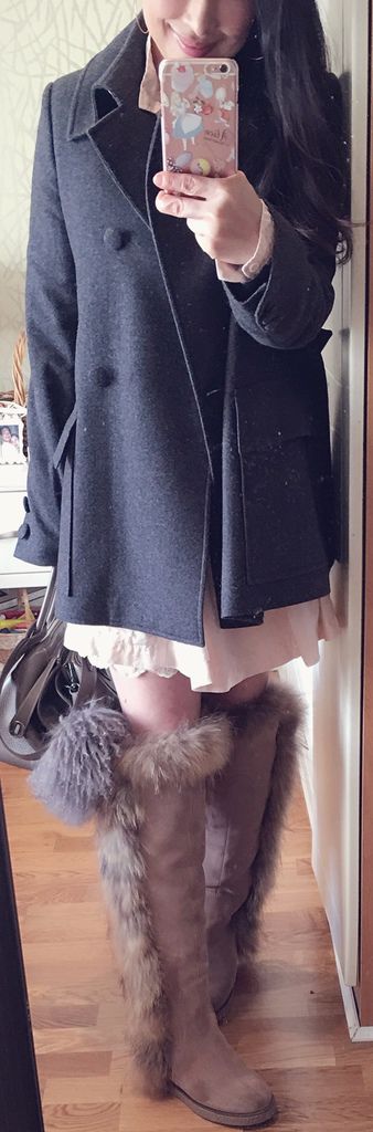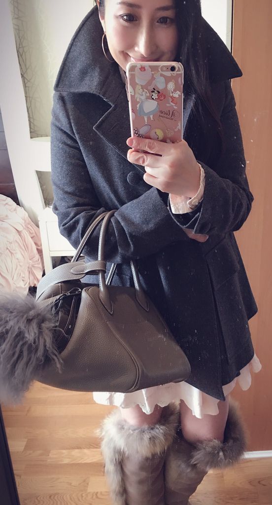 包包和靴子顏色很搭,都是大象灰