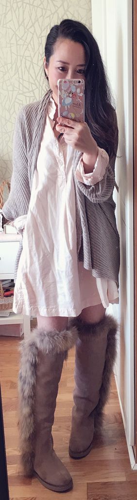 洋裝裡頭只要穿條安全褲,下面套長靴,光腿也一點都不覺得冷(不青元:最好是啦!)