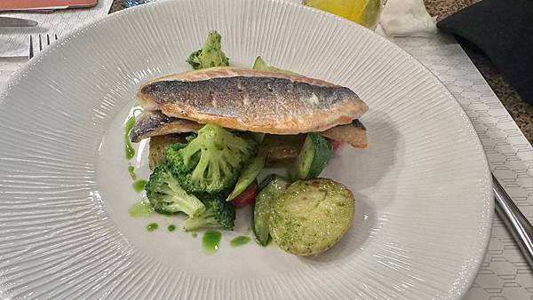經濟實惠的商業午餐竟然有煎鱸魚的選項,新鮮蔬菜搭配香噴噴的細嫩魚肉,健康與美味達到完美平衡,用餐時旁邊坐了一桌來自助旅行的台灣賓客