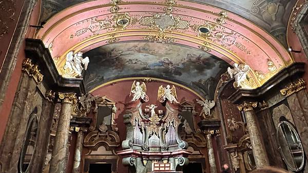 這間教堂是去年跟妹妹來聽音樂會的地方,捷克身為全世界最沒宗教信仰的國家(近八成人民聲稱沒有宗教信仰),這些美麗的教堂最大的功能大都成了音樂演奏,幾乎每間教堂門口都在兜售晚上七點維瓦第四季演奏會的票