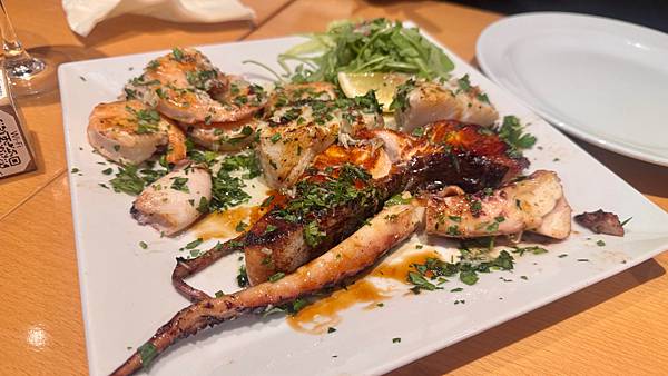 兩人份烤海鮮,章魚腳軟嫩,鱈魚肥美,小卷清甜,蝦仁Q彈緊實,瞬間空盤