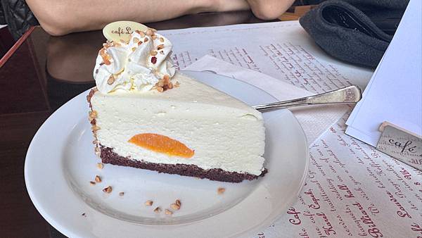 門口排隊很長,但很幸運一下子就輪到兩人座,點了一份桃子奶油起士蛋糕(不過不失)